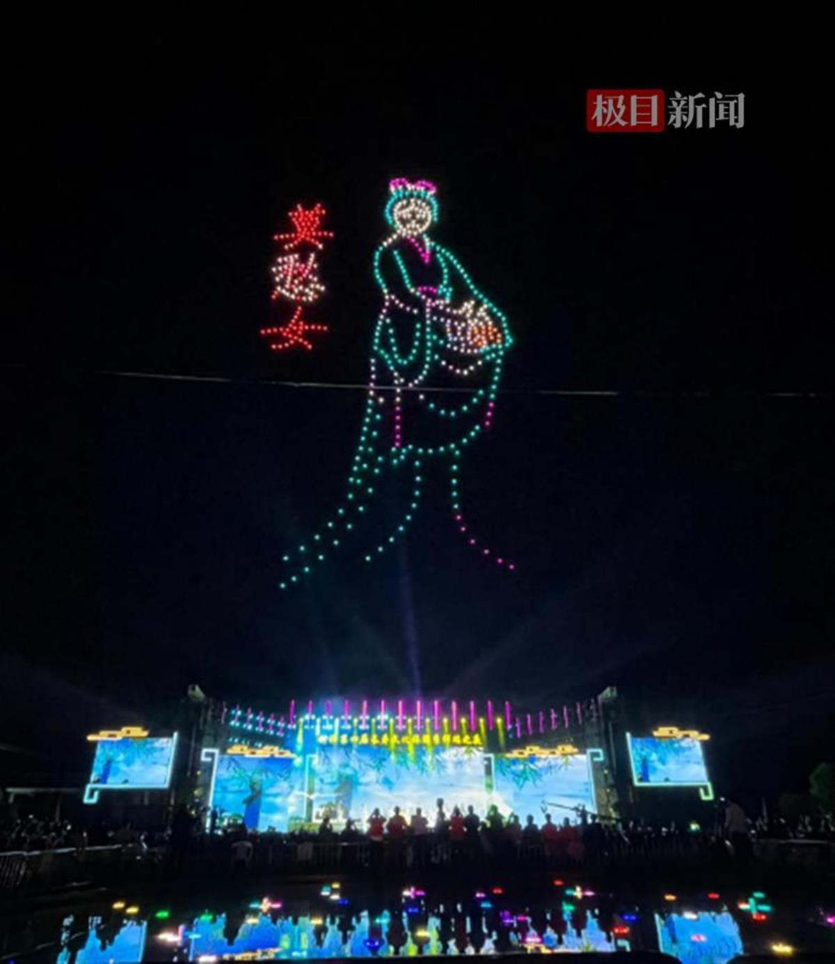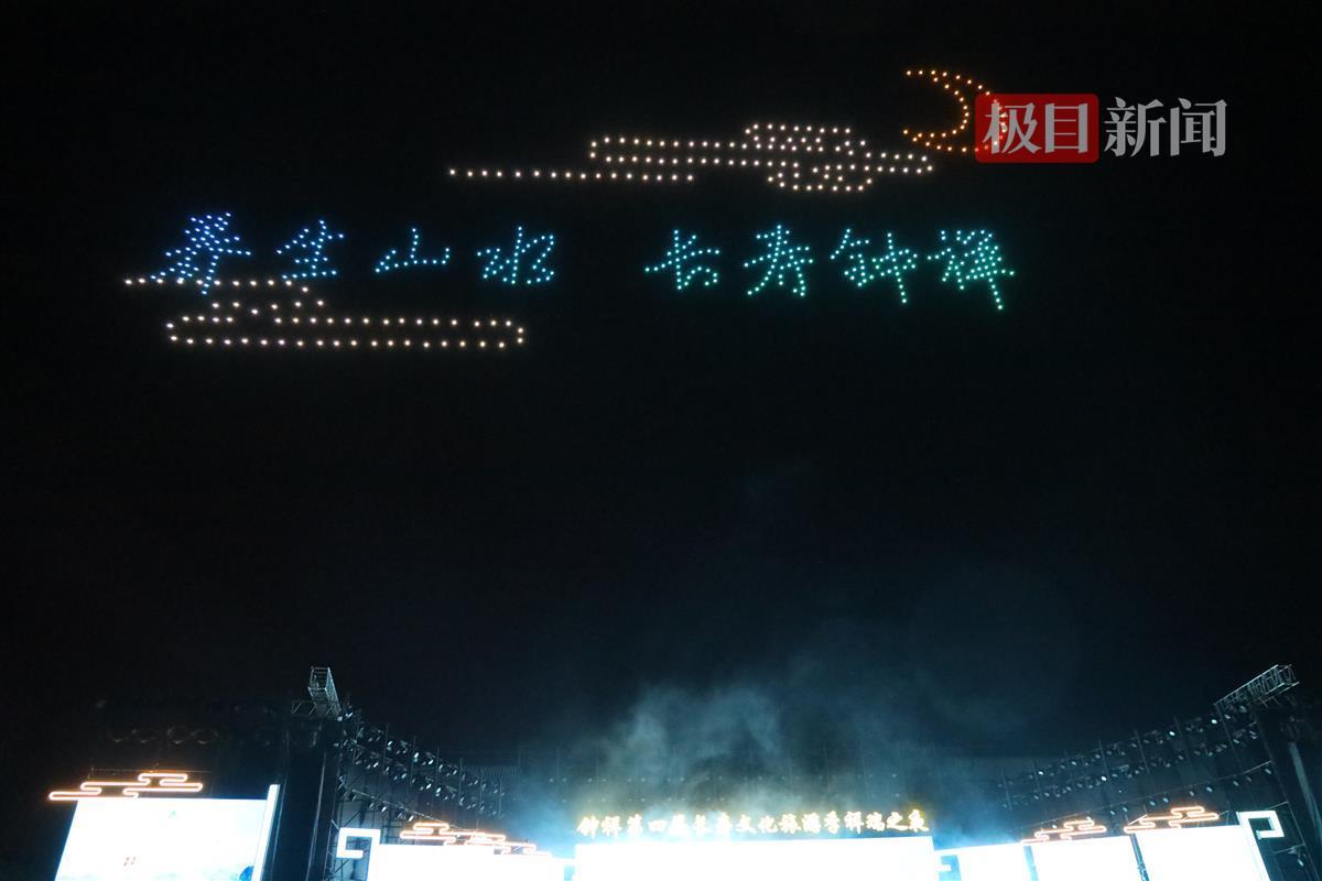 无人机阵在空中拼出“养生山水 长寿钟祥”