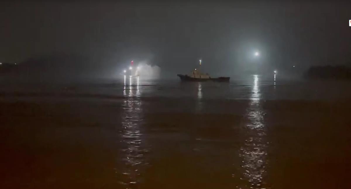 4月22日晚,一艘海船擦碰G240国道九江大桥防撞墩,在担杆洲尾水域抢滩不成功后在西江沉没。船上共有11名船员,其中7人获救,4人失联,目前正在搜救。极目新闻记者采访获悉,一艘过路船只救起了沉没船只上的4名船员。