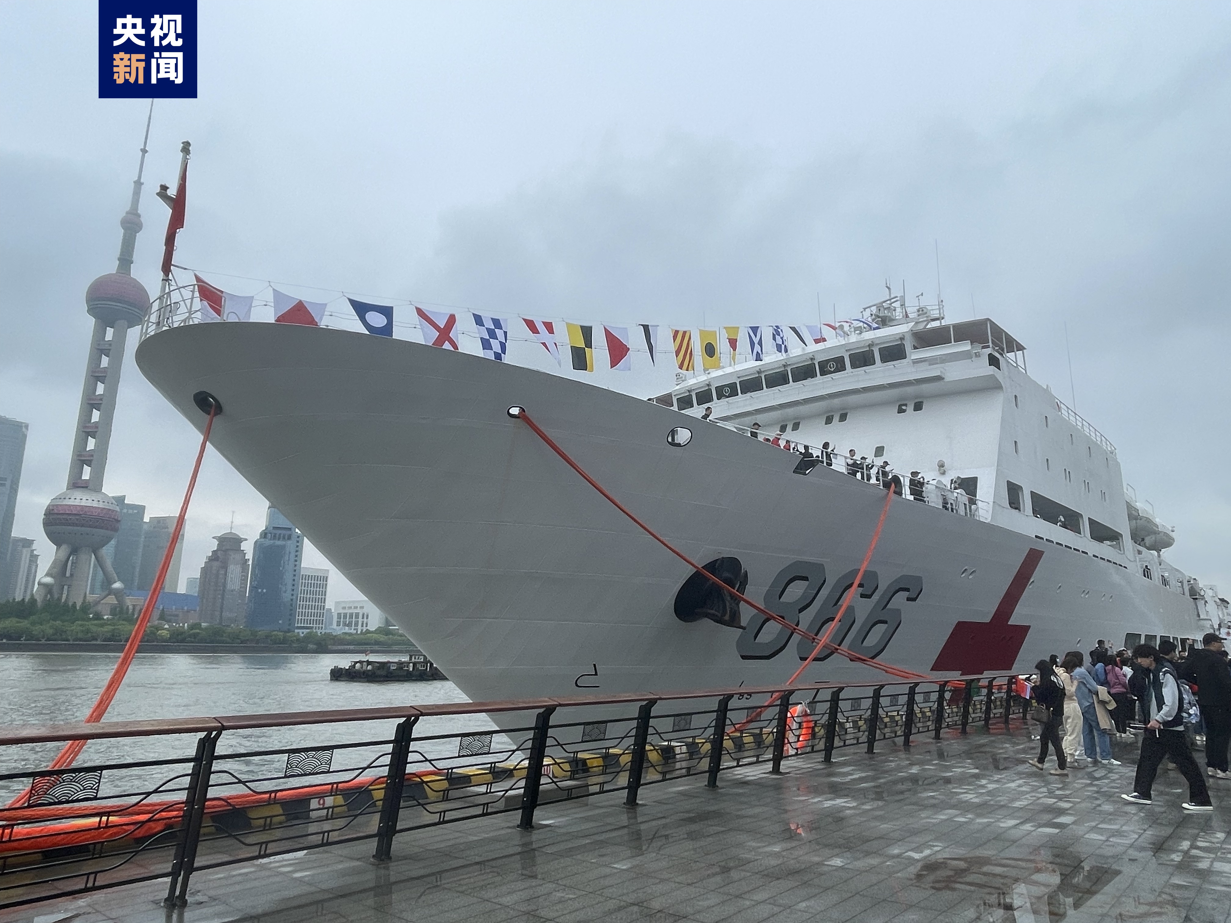 现场海军官兵军容严整,军舰威严。不少上海市民群众早早来到军舰旁,与两艘舰船合影打卡留念。据了解,此次东部战区某海军基地派遣的两艘舰船分别是我国自行设计建造的万吨级海上医疗救护平台“和平方舟”,以及我国自主设计建造的新一代导弹驱逐舰淄博舰。