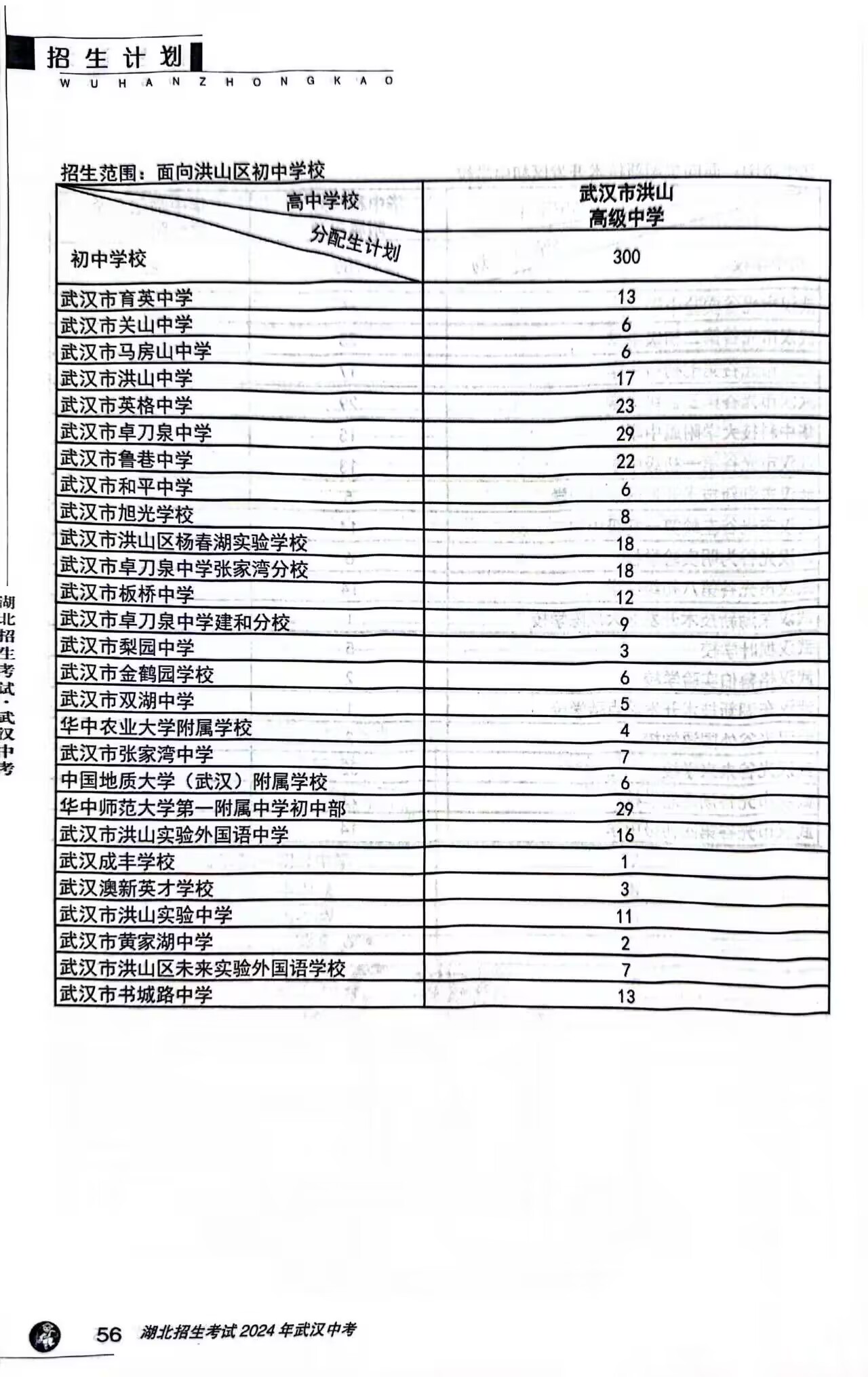 2024年武汉市普通高中分配生预安排招生计划具体如下:
