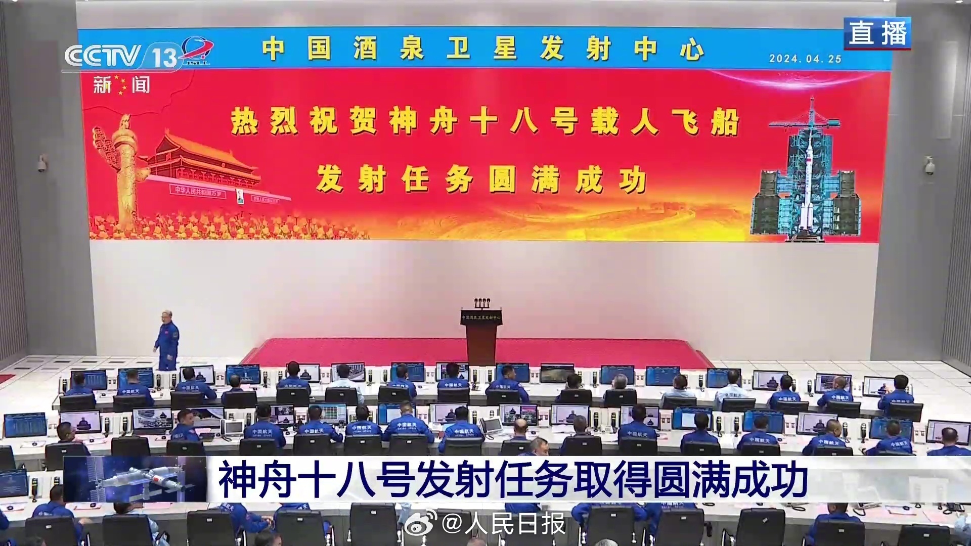 据中国载人航天工程办公室消息,北京时间2024年4月25日20时59分,搭载神舟十八号载人飞船的长征二号F遥十八运载火箭在酒泉卫星发射中心点火发射,约10分钟后,神舟十八号载人飞船与火箭成功分离,进入预定轨道。目前,航天员乘组状态良好,发射取得圆满成功。