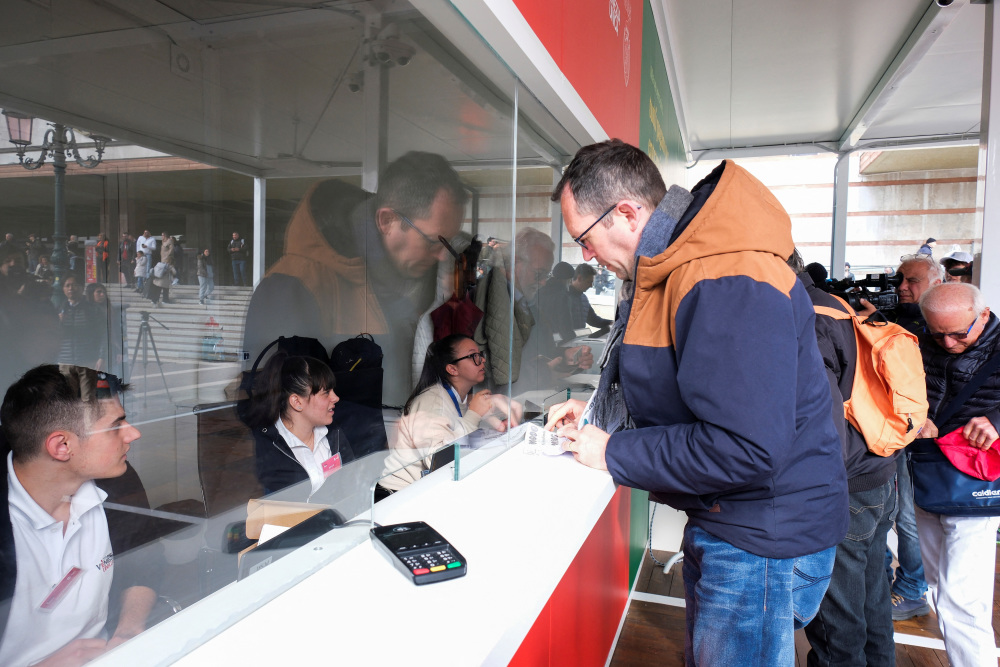 4月25日,游客在意大利威尼斯排队等待购买船票。新华社/法新
