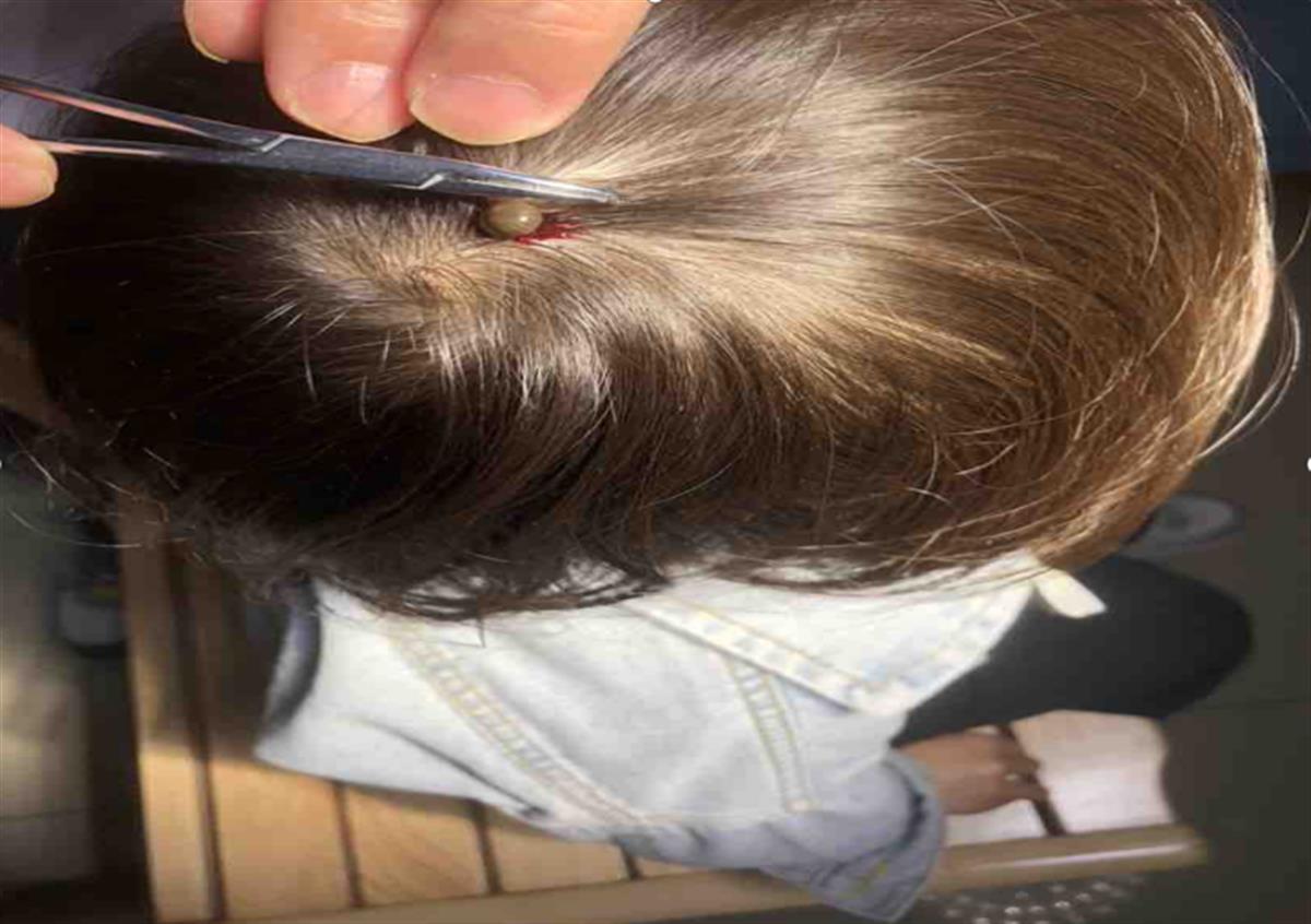 26日上午11时左右,家住武昌杨园的3岁女童彤彤在幼儿园老师的带领下,来到武汉市武昌医院急诊医学科就诊,“我看着像个虫子,怕直接拔会拔不干净。”老师担忧地说。当班医生程虎检查后发现,一个圆鼓鼓的小虫紧紧吸附在了彤彤的头顶上,不易取出。经过仔细辨认,程虎发现是一只蜱虫,而蜱虫裸露在外的部位周围还有些沙粒大小的虫卵。随后,程虎用酒精涂抹在蜱虫裸露部位,麻醉几分钟后,使用小镊子,小心地将蜱虫完整取出。之后,程虎询问急忙赶到医院的女童的家长。家长表示,3天前,自己确实发现彤彤的头顶有一个小硬壳,但一直没在意。彤彤最近并没有到草丛里玩,但家里养有宠物狗。