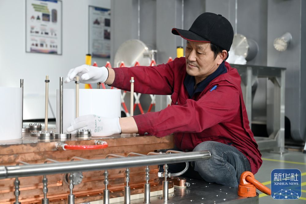 ↑4月25日,工作人员在聚变堆主机关键系统综合研究设施(CRAFT)园区内进行兆瓦级负离子束源装配。