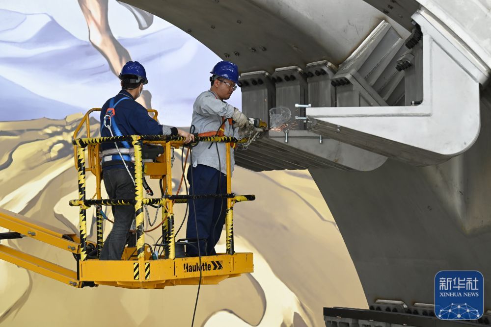 ↑4月25日,工作人员在搭建聚变堆主机关键系统综合研究设施(CRAFT)1/8真空室及总体安装实验平台。