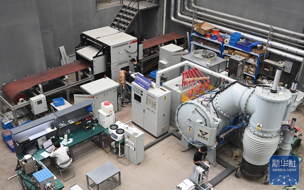 ↑4月25日,工作人员在聚变堆主机关键系统综合研究设施(CRAFT)园区内搭建加速器活化分子应用工程样机平台。
