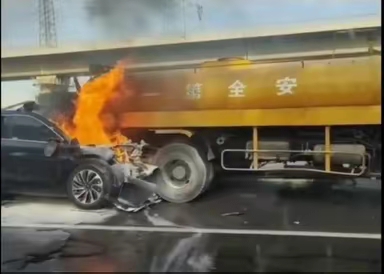 据南方都市报4月28日报道,日前,一辆问界M7于高速快车道上与一道路养护车辆发生追尾,问界M7车头起火,后整部车被大火笼罩。有自称事故当事人姐姐的网友发布内容表示,4月26日中午3点左右,其弟驾驶问界汽车在山西夏县段高速行驶中,与高速浇水车追尾,车内坐有其丈夫和2周岁的儿子。追尾后,车辆发生爆炸,其弟弟、丈夫与儿子不幸遇难。