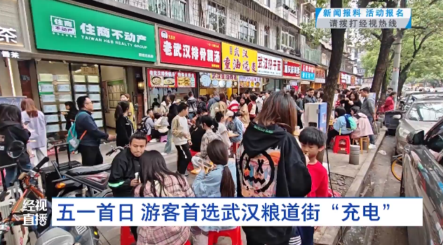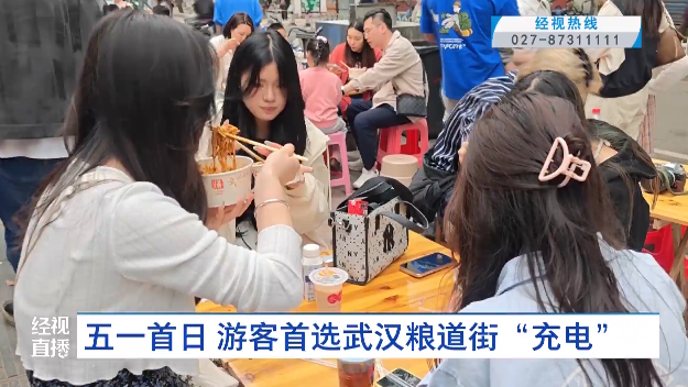 今年五一假期,武汉上榜热门旅游目的地,一波波旅游“特种兵”们的行程,备受大家关注。今天,经视直播记者发现了他们的集合“充电点”,等他们吃饱喝足以后,就该奔向武汉各大景点啦。经视直播记者一大早在小东门地铁站A出口,看到有大量的游客涌出,他们三五成群,有的背着双肩包,有的提着行李箱往粮道街方向走。
