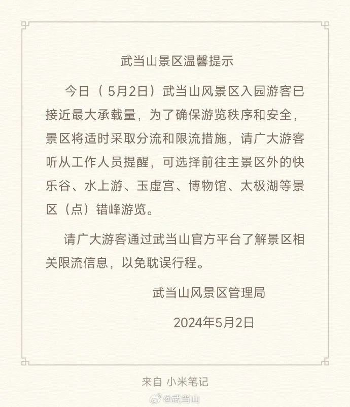 多家景区发布提示: