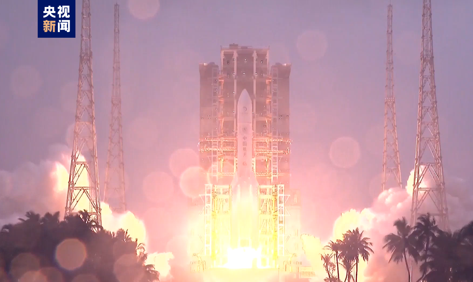 长征五号运载火箭是我国首型芯级直径5米的新一代大推力运载火箭,总长约57米,起飞重量约870吨,起飞推力超过1000吨,近地轨道运载能力可达25吨级,地球同步轨道运载能力可达14吨级,2016年完成首飞。由于地月相对位置不断变化,为确保火箭准时发射,型号团队应用“窄窗口多轨道”发射技术,为火箭在连续两天、每天50分钟的窗口内,共计设计了10条奔月轨道,以提高实施发射概率和可靠性。同时,研制团队持续优化发射场流程,由发射嫦娥五号时的近60天缩减到43天。这是长征系列运载火箭第519次发射。