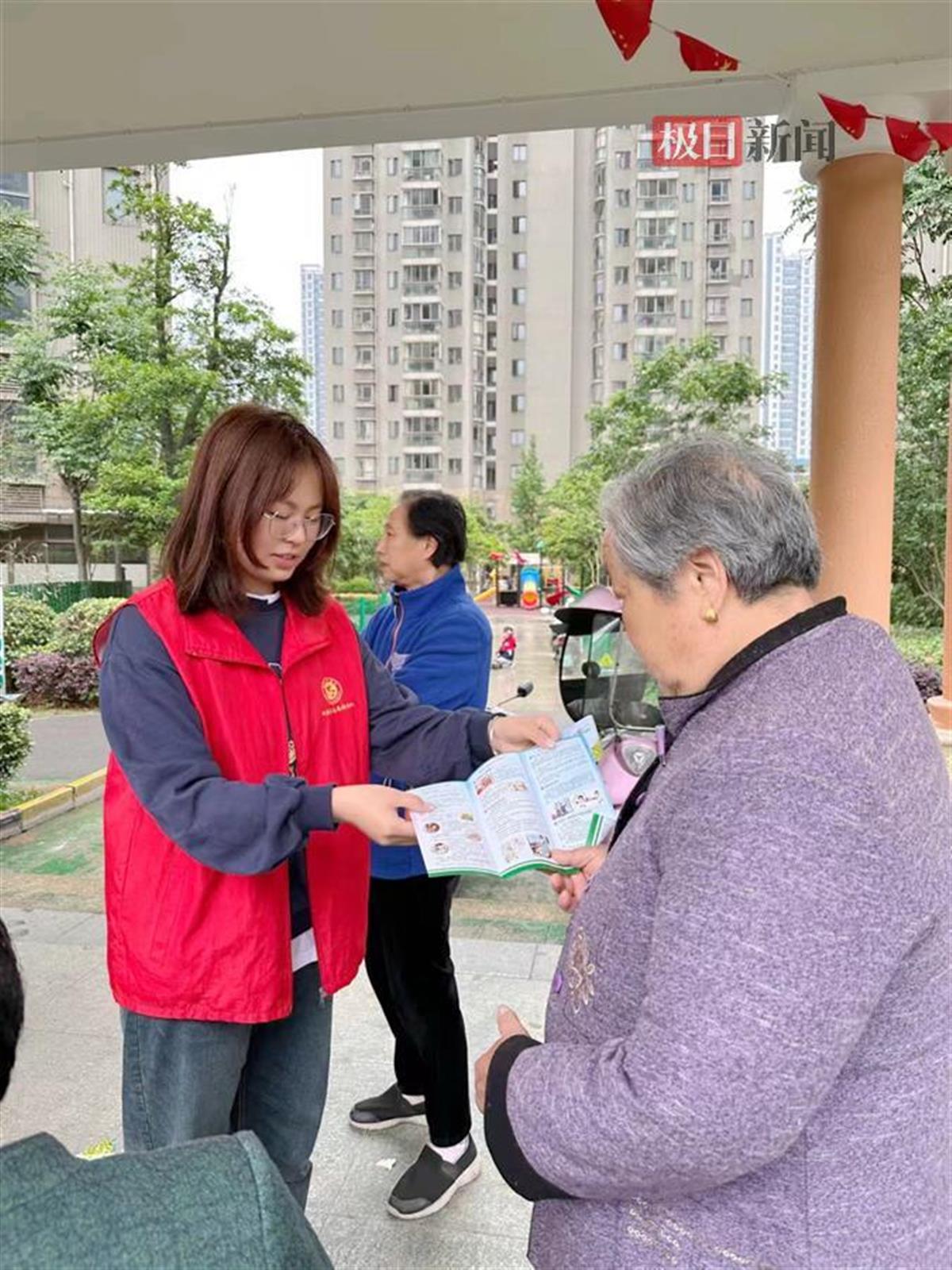 汪佳情在发放宣传资料
