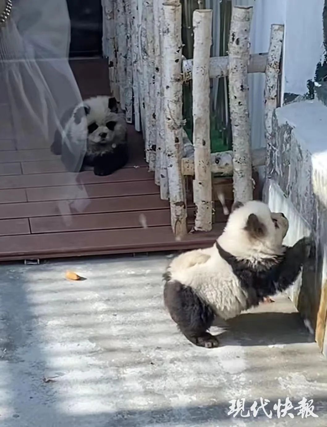 近日,泰州动物园两只“熊猫犬”因憨态可掬形似熊猫走红,吸引了众多市民游客前来打卡,而相关话题也登上热搜。现代快报记者采访获悉,这两只“熊猫犬”是松狮犬染色打扮而成,为的是弥补动物园没有熊猫的遗憾。
