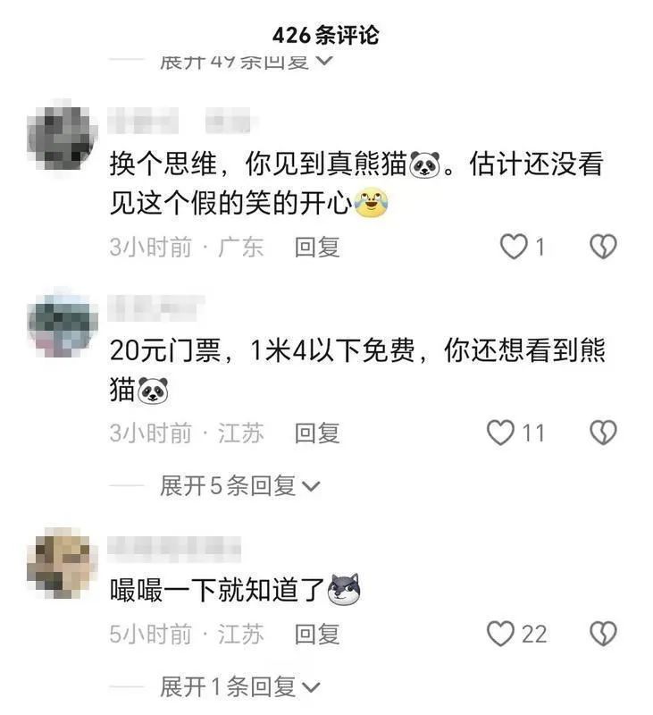 网友“安静式”则表示:“换个角度,你看到真的熊猫,估计还没看到这个假的开心。”