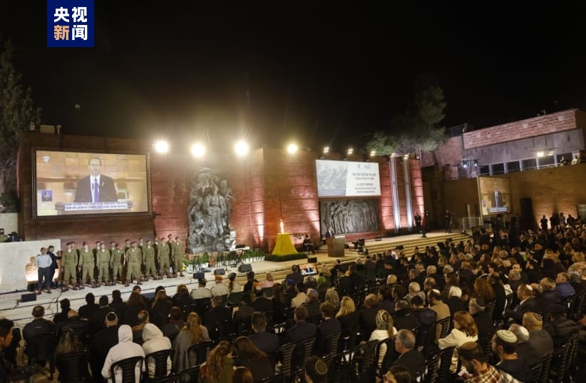据《以色列时报》消息,当地时间5月5日晚,以色列在位于耶路撒冷的亚德瓦希姆大屠杀纪念馆举行大屠杀纪念日活动,以悼念第二次世界大战中的犹太死难者。