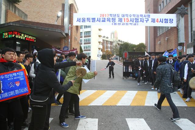 2016年11月17日,在韩国首尔一所高中,一位考生走进考场。新华社记者姚琪琳摄 对有校园暴力史的考生,韩国的大多数高校选择在评估中对其予以扣分,但教育类大学选择了更强硬措施。