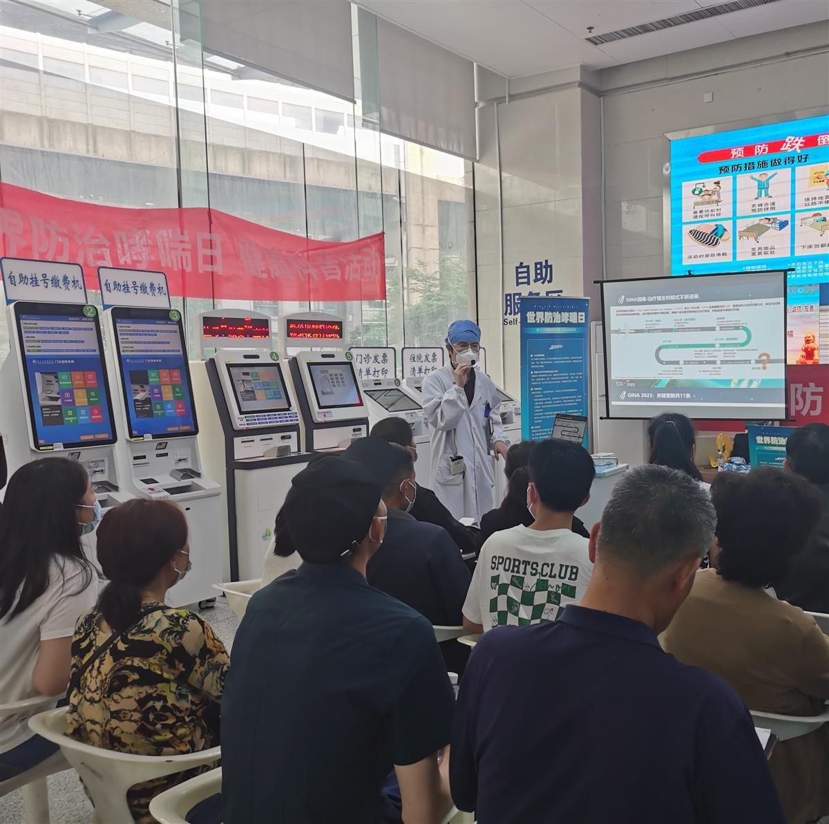 5月7日,武汉市肺科医院在门诊大厅进行世界哮喘日健康科普活动