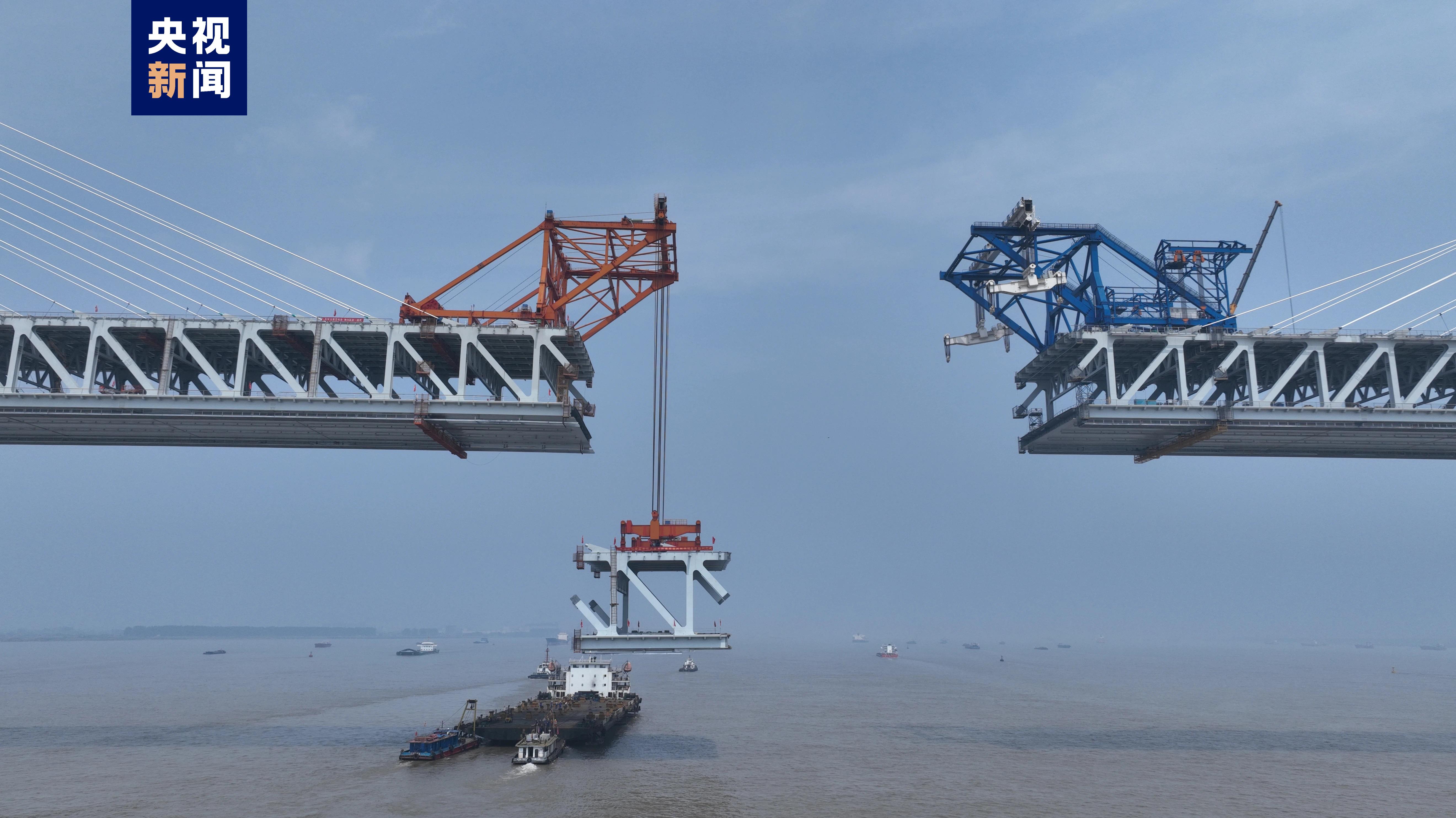 5月7日上午,常泰长江大桥主航道桥常州侧,最后一个大节段钢梁平稳吊装完成,标志着常泰长江大桥常州侧主体工程全部完成,全桥预计6月合龙。
