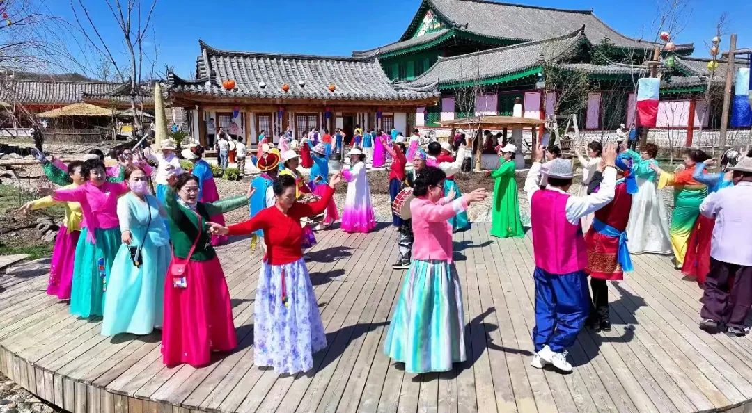 中成朝鲜族生态村以多民族服装全村巡游开市,设计了朝鲜族传统尤茨戏游戏互动活动、婚礼花轿巡街活动、中国朝鲜族婚礼、花甲礼、抓周礼典礼仪式、飞天凤凰表演等多种多样的活动演出,游客在景区内还可品尝到手工打糕、纯手工辣白菜、古法土豆粉、传统大锅酱汤、朝鲜族舂米、石磨豆腐、小鱼汤等美食。