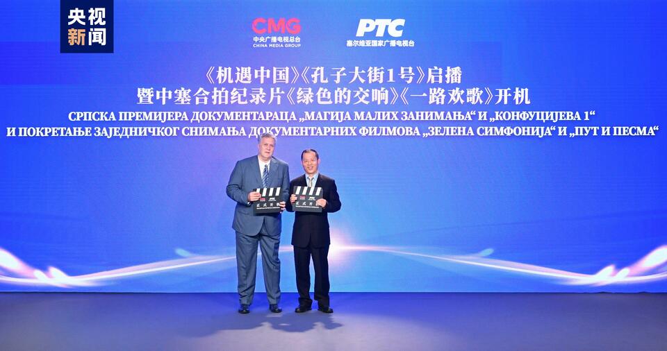 活动上,中央广播电视总台与塞尔维亚国家广播电视台联合摄制的纪录片《绿色的交响》《一路欢歌》正式开机,将描绘绿色发展的和谐之路,展望合作共赢的美好未来。探寻全球发展活力之源的系列纪录短片《机遇中国》和展现跨越时空文明对话的纪录片《孔子大街1号》,也于5月7日起陆续登陆塞尔维亚国家广播电视台。