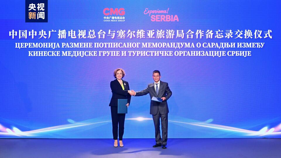 为进一步深化务实合作,中国中央广播电视总台与塞尔维亚旅游局签署并交换合作备忘录。双方将在节目联合制作、项目共同策划、活动举办推介等方面展开合作,共同推动两国旅游文化广泛传播,促进两国人民相知相亲。