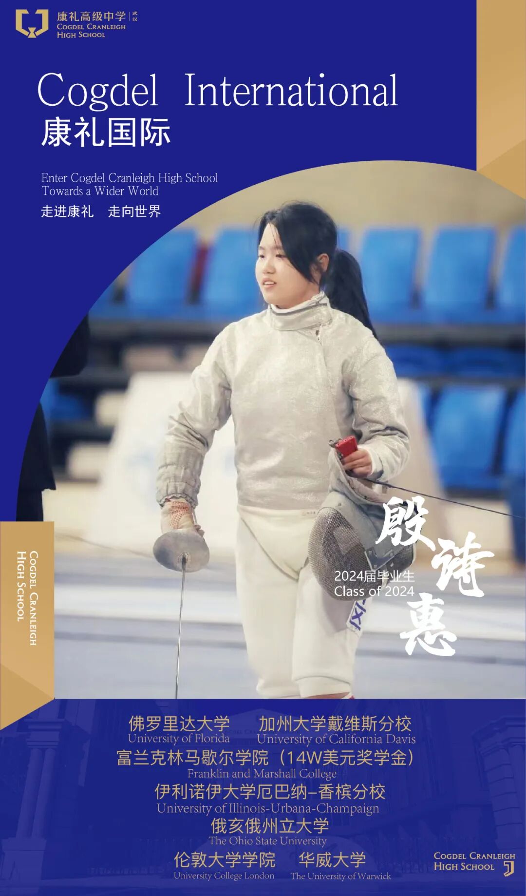 个性化的学业辅导加心灵抚慰,也让殷诗惠在面对困难时变得更游刃有余。平时,她也会用运动的方式缓解压力,从小就喜欢击剑运动的她,还是学校击剑社团的发起人。“进入康礼后,我和学校提出了增设击剑社团,没想到我的愿望很快就实现了!学校不仅采纳了我的建议,还招聘了专业教练,配备专门的功能室,社团很快就办了起来。”