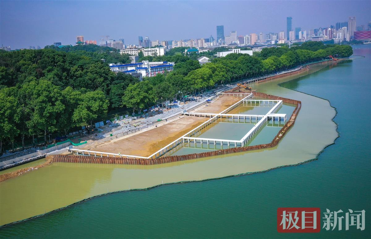 记者在现场看到,凌波门栈桥的桥墩和桥体已经搭建完成,临湖的亲水平台也进行了拓宽。这座栈桥紧邻武汉大学,因栈桥在武汉大学凌波门旁边,又有武林功夫“凌波微步”之称,这座栈桥一直吸引着众多市民和游客的目光。在栈桥上漫步,湖光山色尽收眼底,让人流连忘返。