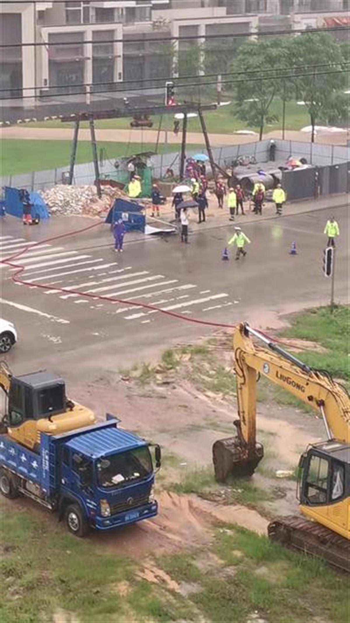 8日晚6时许,武缘大道附近一小区工作人员告诉记者,事故发生于小区门口的市政道路上,据其了解,有关部门在现场设了围挡,现在仍未拆除,消防车仍然停在现场。
