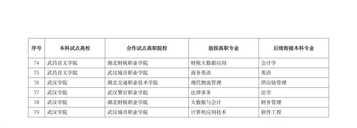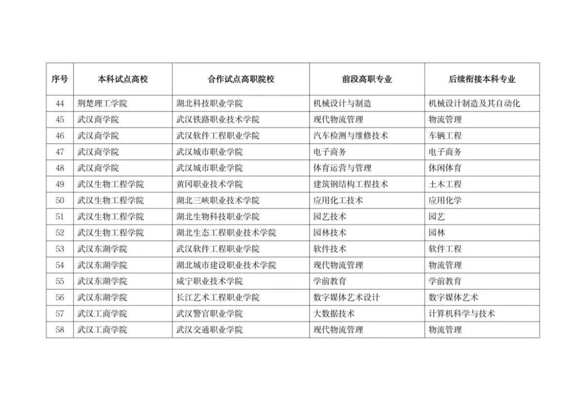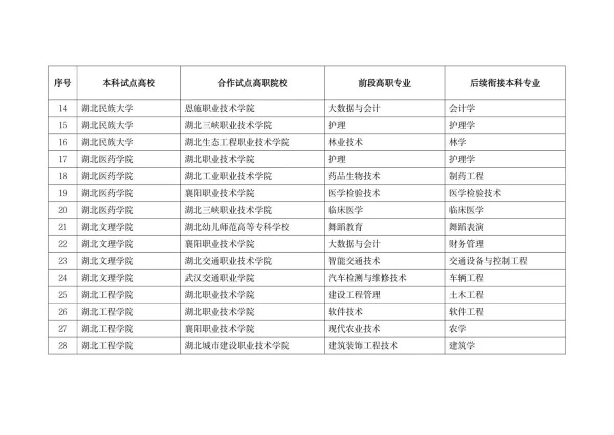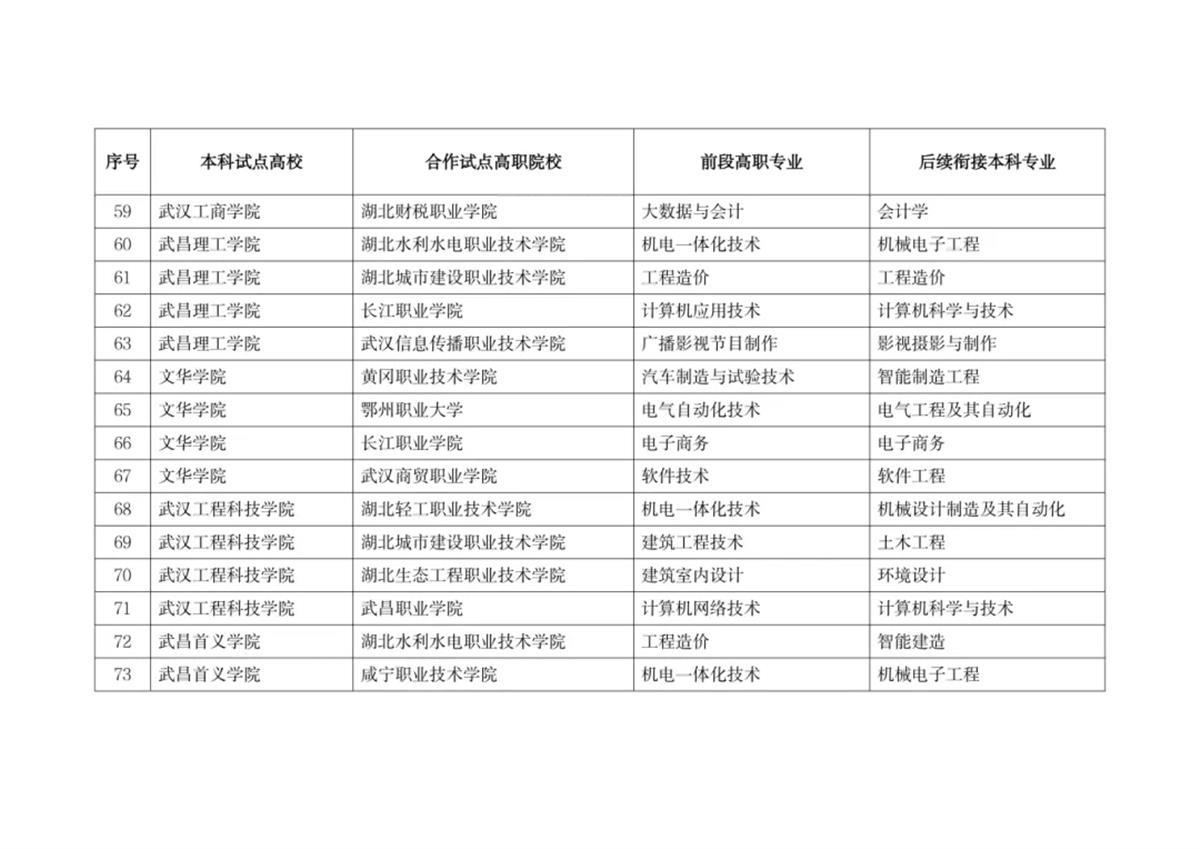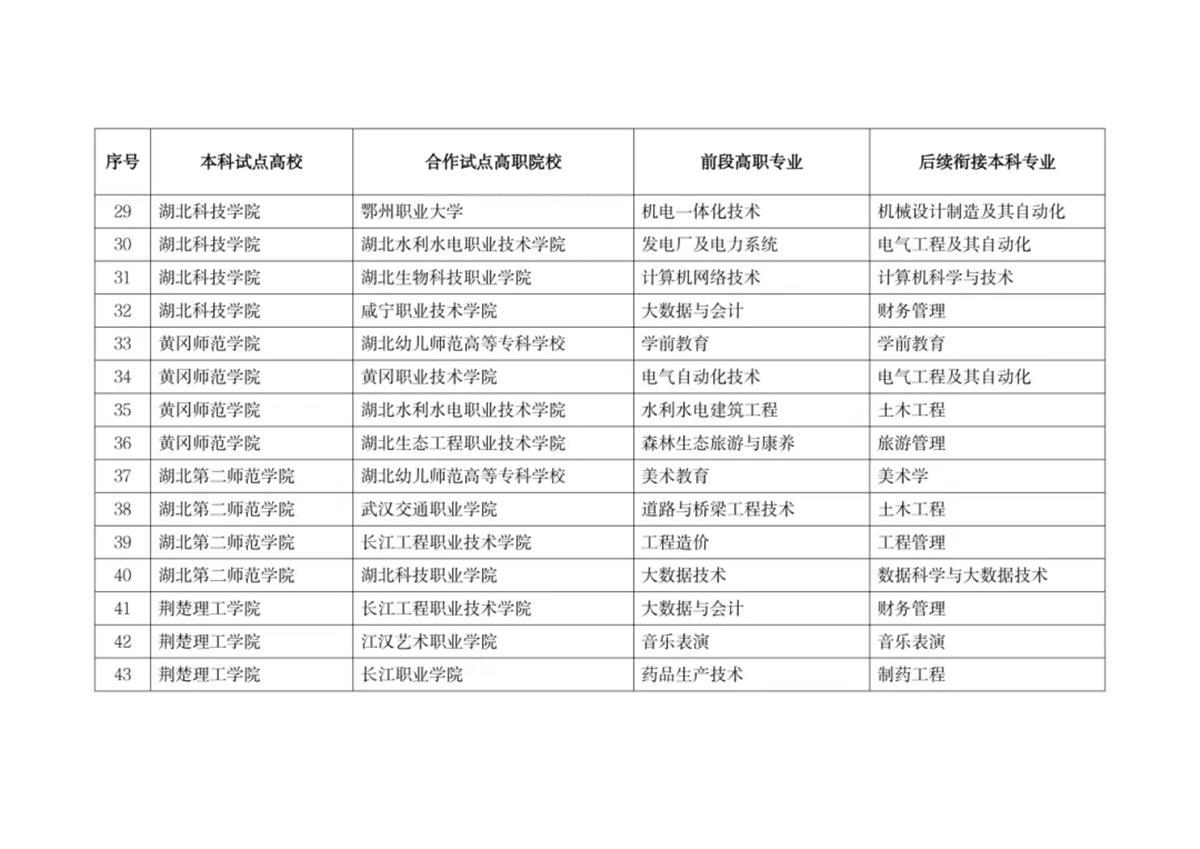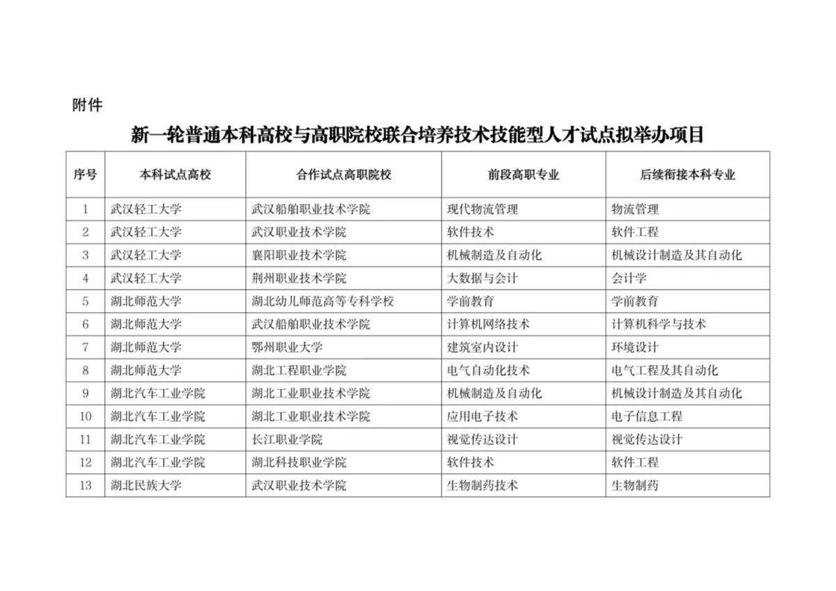 据湖北省教育厅通知,拟同意武汉轻工大学等20所本科高校和33所高职院校,联合申请举办79项普通本科高校与高职院校联合培养技术技能型人才试点项目,现将拟举办项目予以公示,公示期自2024年5月6日起至5月9日止。