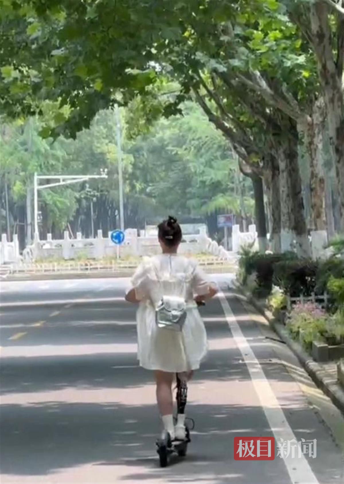假肢金属是外露的,王贵红却不避讳,校园里常能见到一个穿着长裙的“钢铁女侠”。