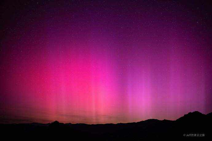 5月11日凌晨,新疆阿勒泰。摄影师@Jeff的星空之旅拍摄到极光活动,红色、紫色、绿色的极光交相辉映,如梦如幻。错过直播?今晚还有!一起到阿勒泰追逐极光!