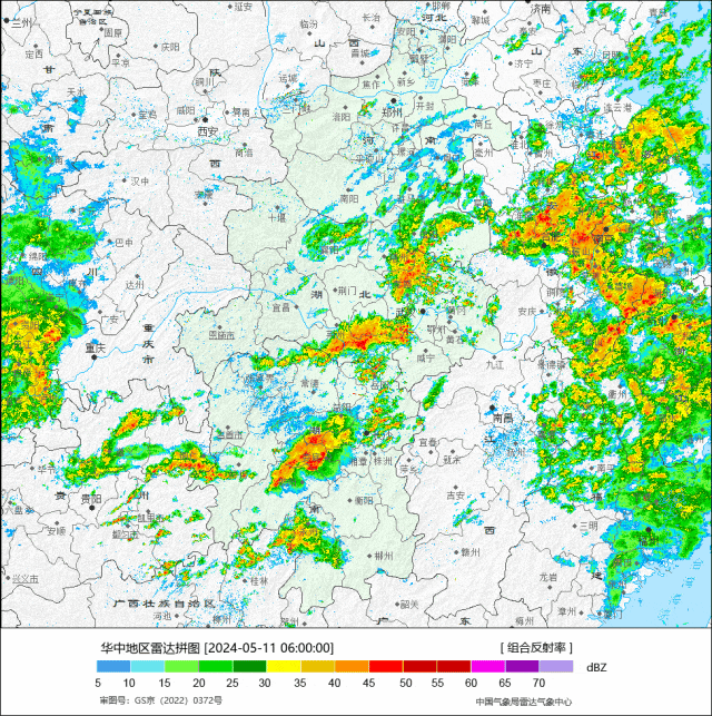 今早湖北东部部分地区降雨较强,较强回波位于武汉、鄂州、黄冈等地。