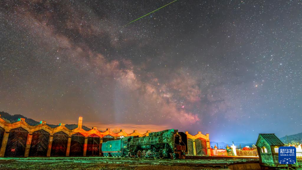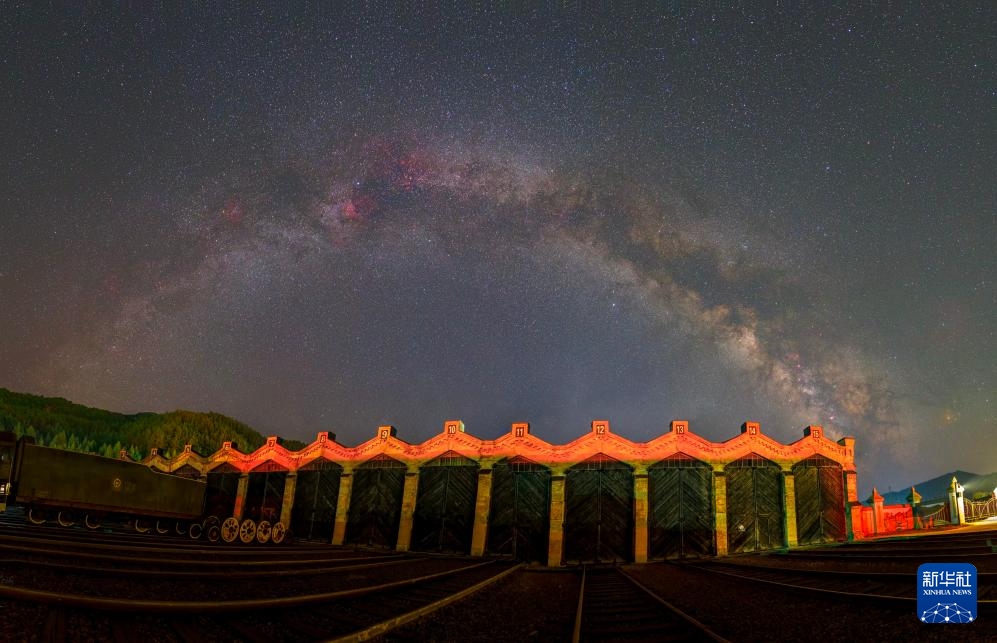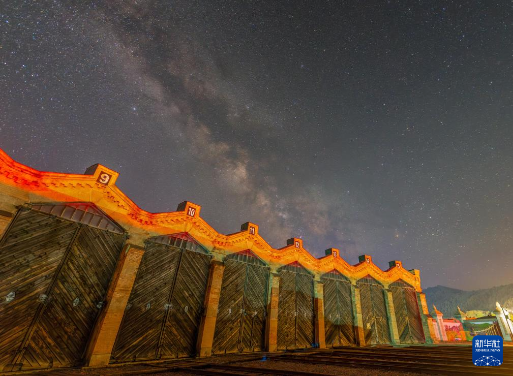 星空下的中东铁路博物馆机车库(拼接照片,2024年5月8日摄)。