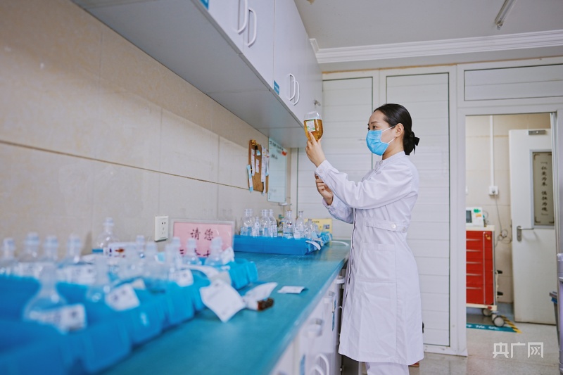 护士高雅在配药室内准备药物(央广网记者 张羲轮 摄)