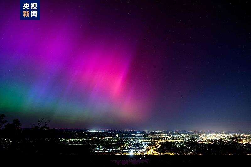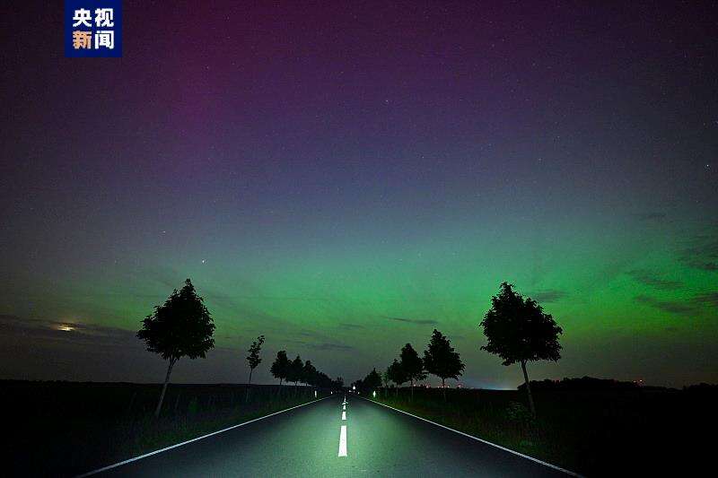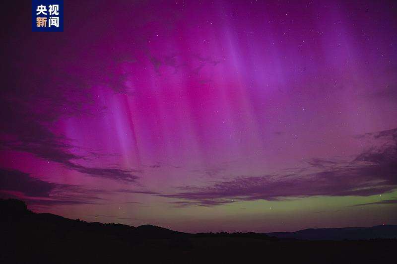 受本次地磁暴影响,北半球多地上演了一场绝美的极光秀。