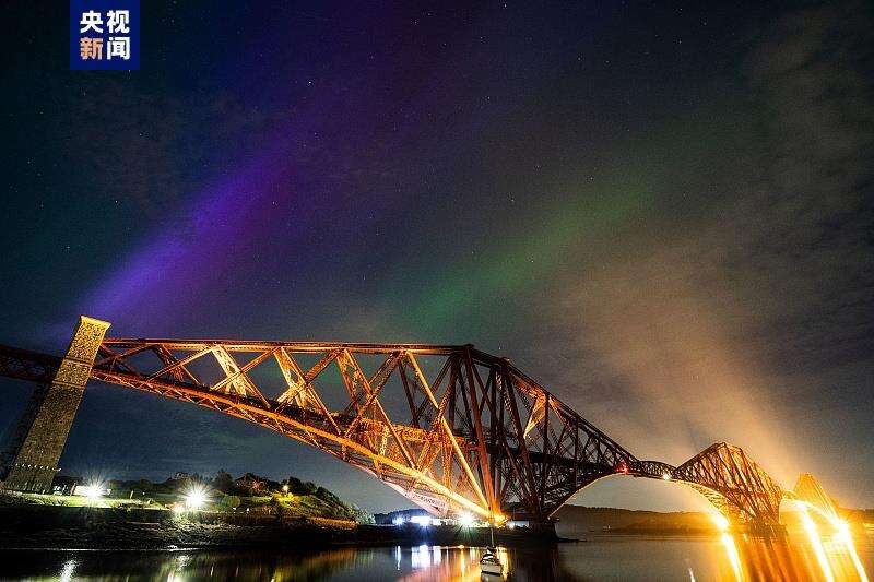 10日,英国苏格兰北昆斯费里的福斯桥上也出现了美妙的极光。