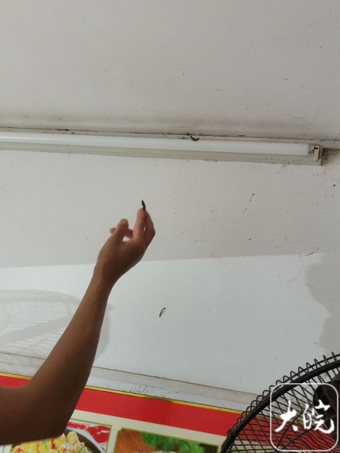 庄先生在笔峰路旁开了一家小饭店,当晚小飞虫肆虐的时候,店里正好有几桌客人。其爱人汪女士告诉大皖新闻记者,天花板上很快就密密麻麻爬满了小飞虫,让人头皮发麻,“有几桌客人在吃饭呢,万一掉到菜里可怎搞?”
