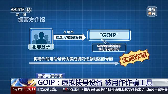 警方调查发现,本案中用来诈骗的固定电话分散在上海各个区县,而且竟然全都是居民家中的固定电话号码,而且他们都被安装了一种叫GOIP的设备,居民反映这个设备是相关运营商的工作人员上门来安装的。据警方介绍,所谓的“GOIP”其实就是一种虚拟拨号设备,是近些年境外的诈骗分子普遍使用的一种新型诈骗工具。“GOIP”是网络通信的一种硬件设备,它能将传统的电话信号转化为网络信号,犯罪分子在境外只要通过境内安装好的“GOIP”设备,就能将境外的电话号码伪装成境内任意地区的号码,进而实施诈骗。