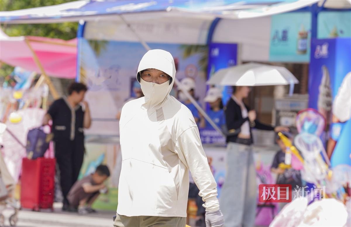 早上出门上班,佩戴防晒帽、打遮阳伞的人不多,戴防晒面罩的较少;而临近中午,特别是午后,街头可谓防晒装备大比拼。5月13日,记者在武汉街头看到,帽子、遮阳伞或防晒服只是基本装备,有的朋友戴着防晒面罩、冰袖,把面部、胳膊捂得严严实实的,绝不暴露在一缕阳光之中。