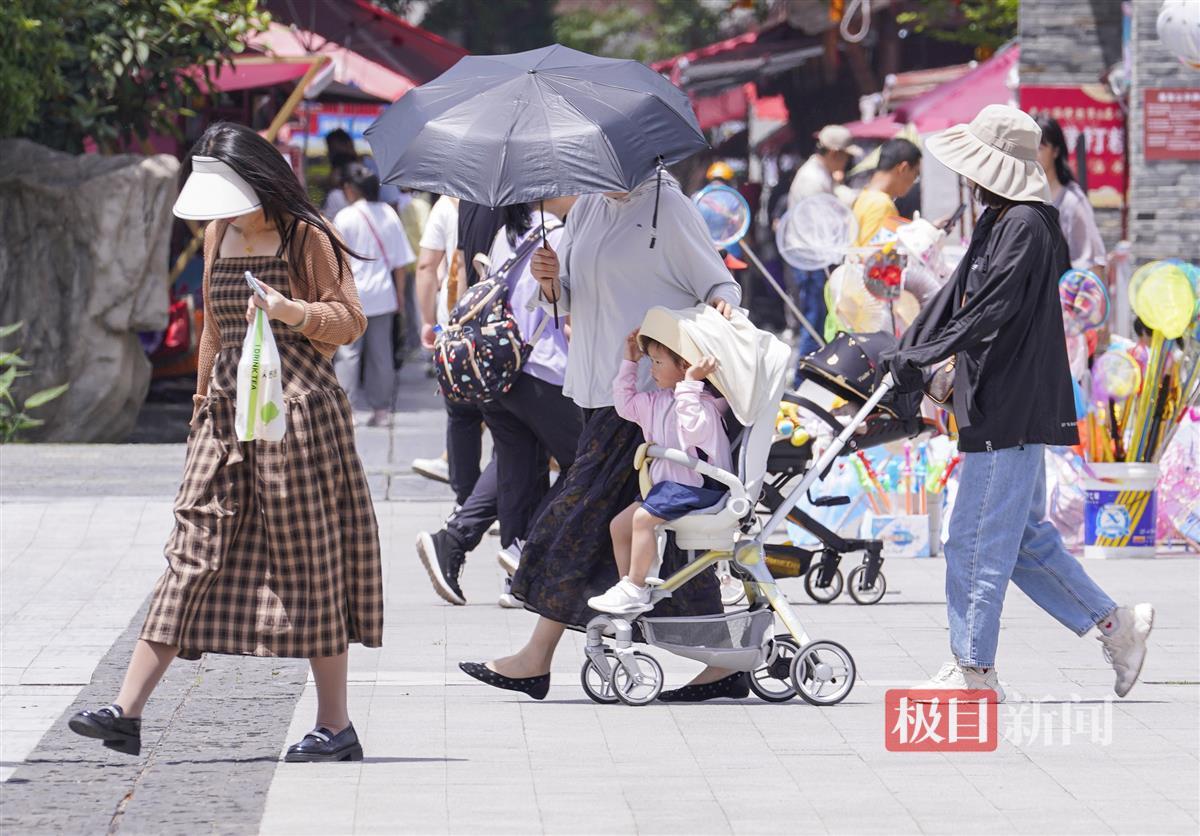 “不仅很晒,也很热。”市民倪先生本来计划骑行上班,还是改坐地铁了。确实,今天大家的感受是行走在阴凉下还好,但暴露在阳光中,就很热了,地面反射的热量,那是特别的“热情”。