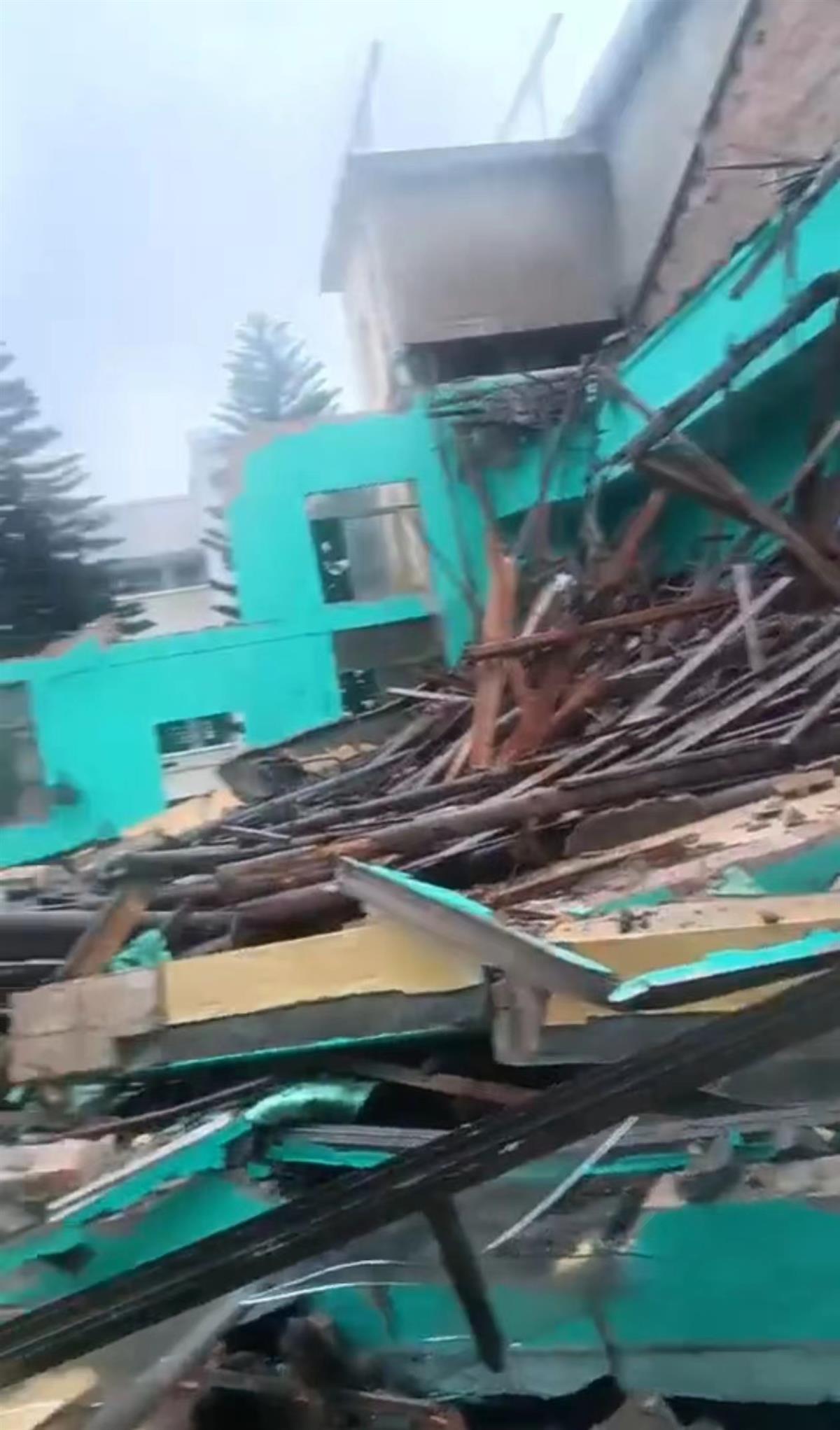 网传视频中,四周是倒塌后只剩部分的砖墙。绿色的砖墙内,粗大的木棍、木板等木制材料被损坏,包括砖块一同杂乱地散落在场地中间。视频中可见警戒线和医务人员。视频发布者称这是“今晚我团演出的地方”“太可怕了”。