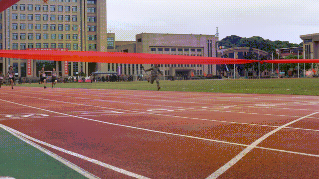 她在学校军事体育运动会上