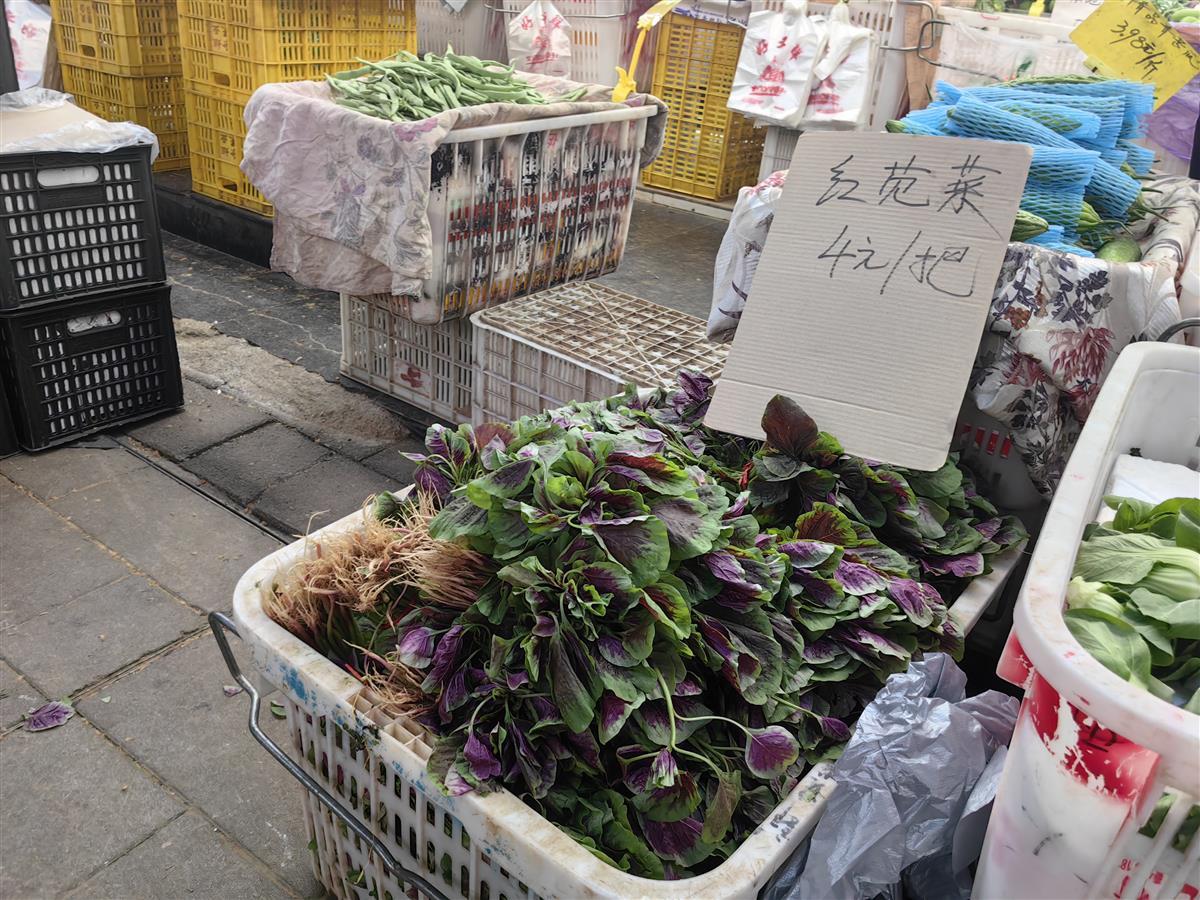 同样的情况也出现在多个集贸市场里。在菜价普遍比较便宜的汉口江大路至于三眼桥路的街边蔬菜店里,红苋菜每斤价格从4元到5.5元不等。有店主表示,这种本地菜最高卖过6元一斤,最低卖过3.5元一斤,最近天气热起来以后,红苋菜的价格又涨到了5元左右。