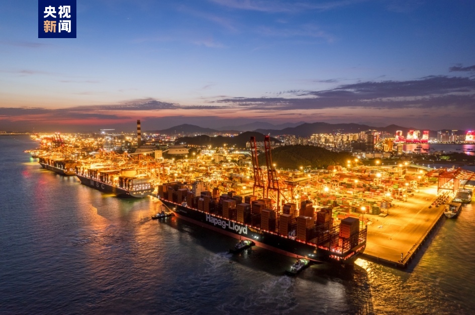 5月15日晚,赫伯罗特航运20万吨级集装箱船舶“新加坡快航”轮驶入海通码头“整齐入列”,与停靠在嵩屿码头的2艘20万吨级的船舶依次排开,正式拉开了厦门港华灯初上的夜间繁忙序曲,标志着厦门港首次迎来三艘20万吨级超大型集装箱船舶同时靠泊作业。