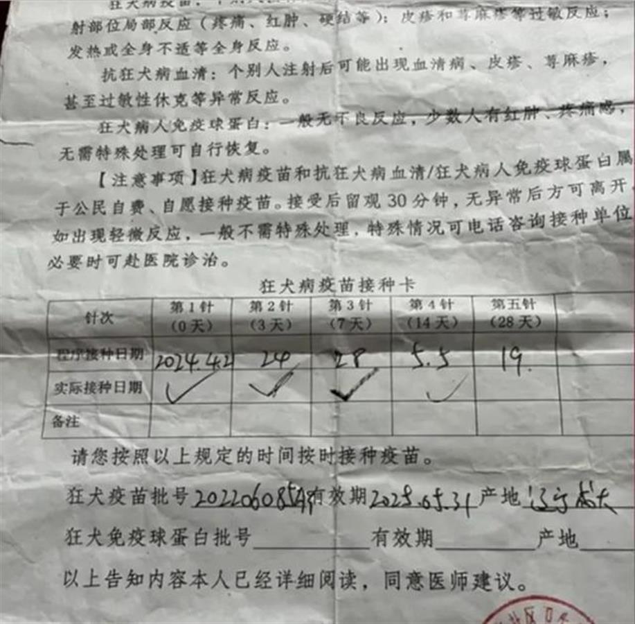 孩子的狂犬疫苗接种卡(来源:纵览新闻)