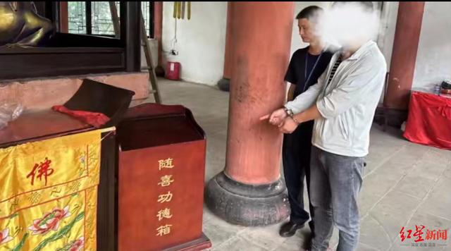 据办案民警介绍,5月6日,宜宾长宁警方接到位于长宁县佛来山西明禅寺工作人员报警称,该寺功德箱内的香火钱被偷。据悉,佛来山西明禅寺历史悠久、文化厚重,自古以来为川南名刹。