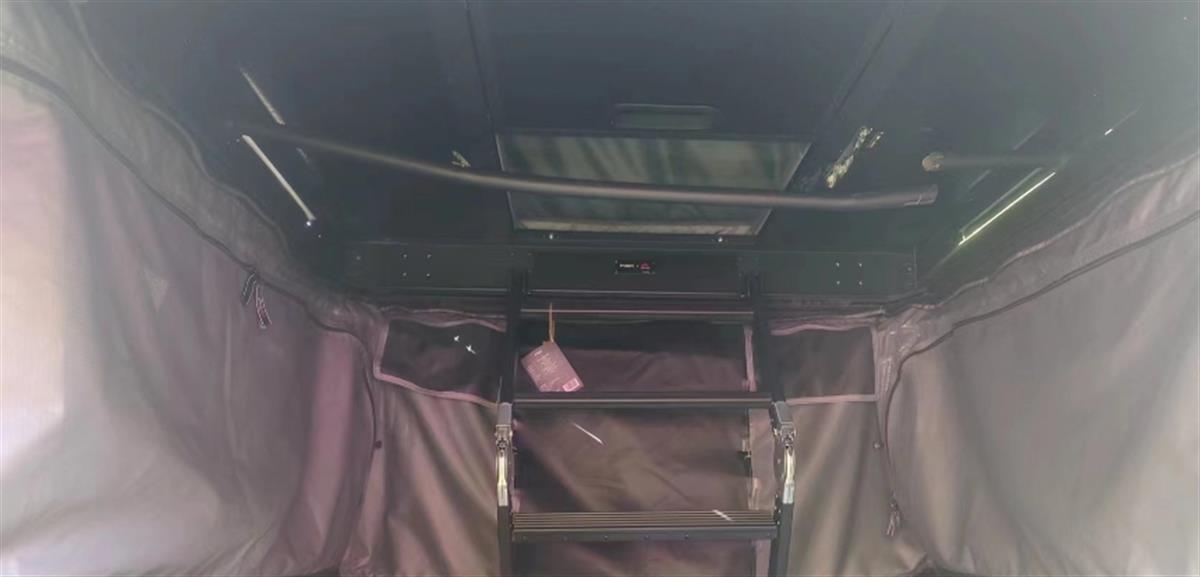 湖北一家销售一层电动升顶帐篷的公司工作人员介绍,他们的电动升顶帐篷通常是安装在车顶,可以通过车辆天窗或者外部梯子进入。如果两侧侧板放下,则帐篷无法下降;帐篷内部有一个急停开关;如果在使用中误触导致顶部下降,前部的大窗可以自由出入,如果侧板未放下,也可从侧面出入。
