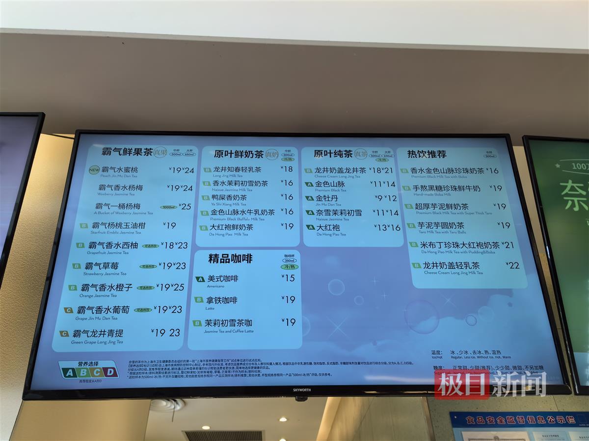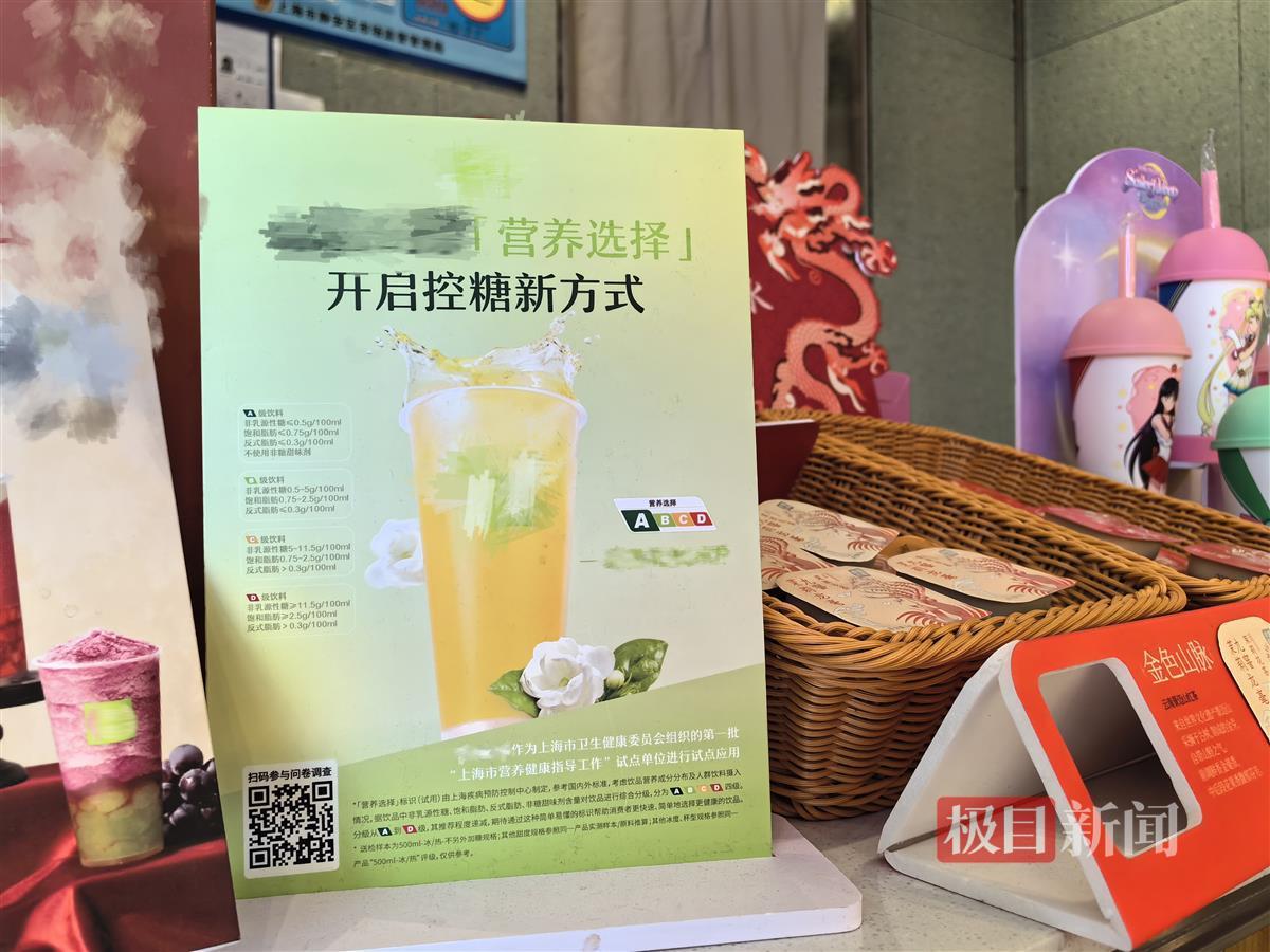 “营养选择”分级标识已在上海试点将近两个月。5月16日,极目新闻记者来到普陀区长寿路商圈两家参与试点的品牌茶饮店探访。两家门店的点单台区域,均对不同饮品进行了分级,并配有解释标识。