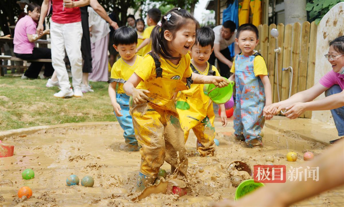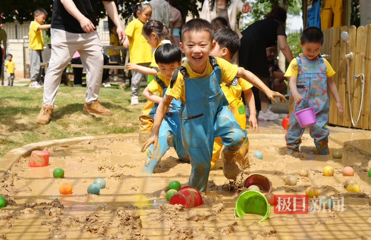 5月15日,在武汉东西湖晶晶恋湖幼儿园的泥池里,小朋友们在开心地踩泥巴、捏泥巴,尽情享受玩泥巴的乐趣。据了解,在该园“泥”好有趣的课堂上,小朋友通过对泥巴拍、捏、揉、按、堆、搓、盘等方式的操作,锻炼了手眼协调的能力,感受了泥土的气息。