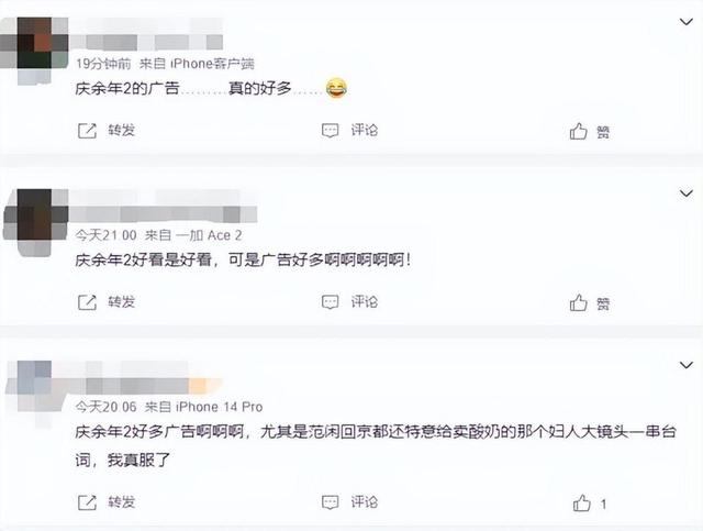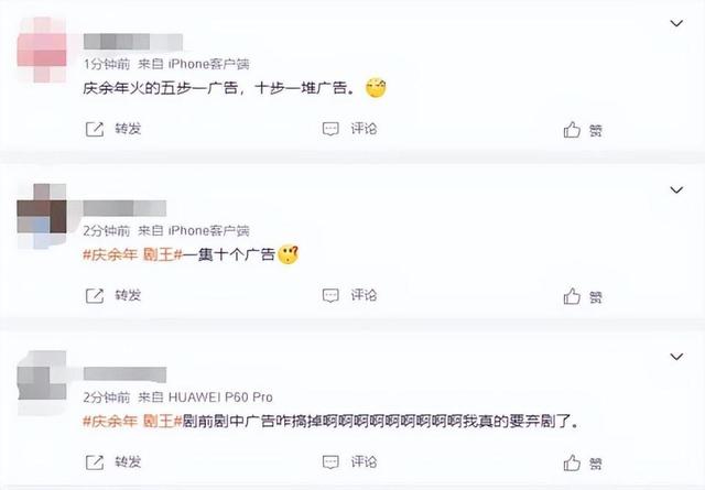 随着《庆余年2》的播出,许多网友也开始讨论起剧情,同时也有网友吐槽“《庆余年2》广告多”。网友表示:“一集十个广告”“尤其是范闲回京都还特意给卖酸奶的那个妇人大镜头一串台词”“庆余年火的五步一广告,十步一堆广告”等等。
