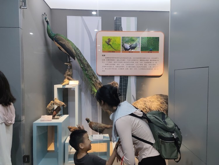 华中农业大学博物馆内展出的孔雀。上游新闻记者 苏笃 摄